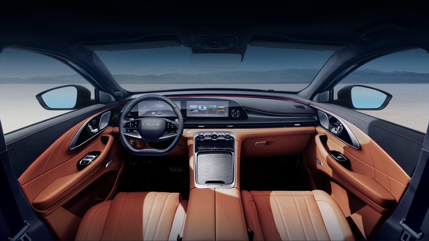 座舱方面,该车配备 12.3 英寸液晶仪表 + 12.3 英寸中控屏组成的双联屏,搭载 Lion5.0 雄狮智云系统及高通骁龙 8155 芯片,标配“沐光橙”内饰配色,提供 NAPPA 真皮座椅以及麂皮材质顶篷。