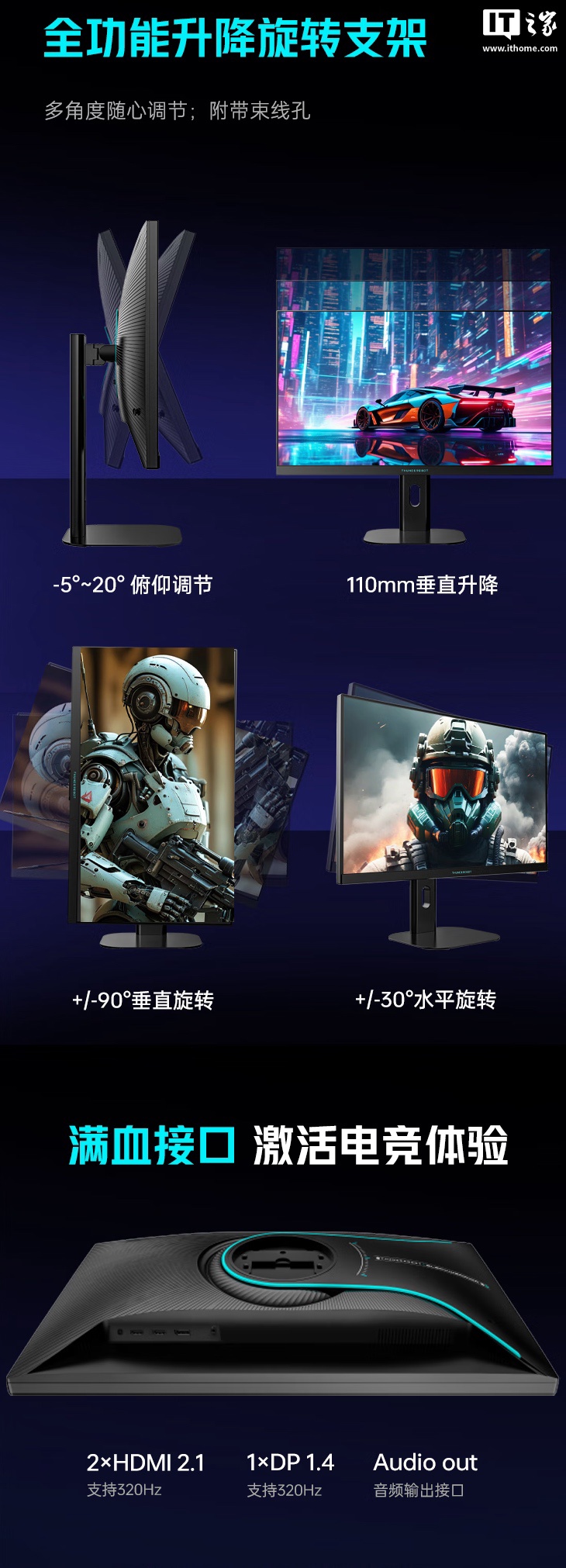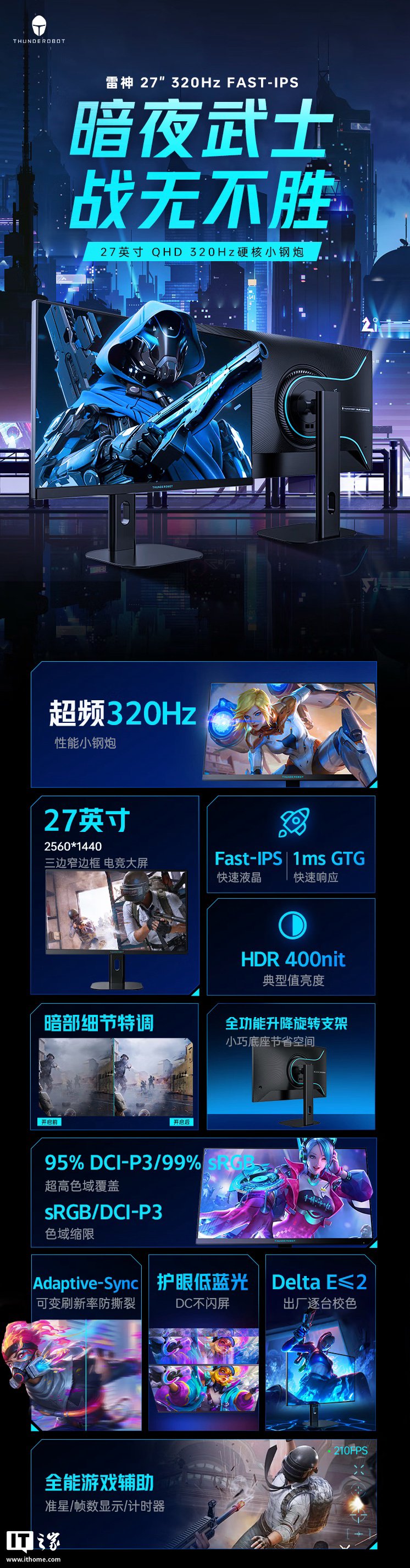 IT之家 4 月 7 日消息,雷神现已在京东上架一款型号为“ZQ27F320L”的 27 英寸显示器,这款显示器主打“2K 320Hz 超频”,定价为 1399 元。