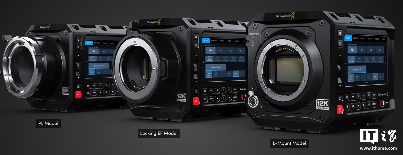 此外,该系列电影机可选 3 种镜头卡口,分别为 PL 卡口、带锁止机构的佳能 EF 卡口、L 卡口,并且还可安装镜头转接环,获得更广泛的现代和复古镜头选择;在动态范围方面,6K 型号拥有 13 档动态范围,12K 型号为 16 档动态范围,官方称可为画面中极亮和极暗部分保留更丰富的细节。