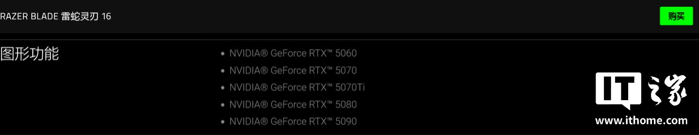 此外,雷蛇 2025 款灵刃 16 轻薄游戏本的官网页面也确认了此前曝光的 RTX 5060 显卡配置,这款笔记本电脑 GPU 同意将配备 8GB 显存。
