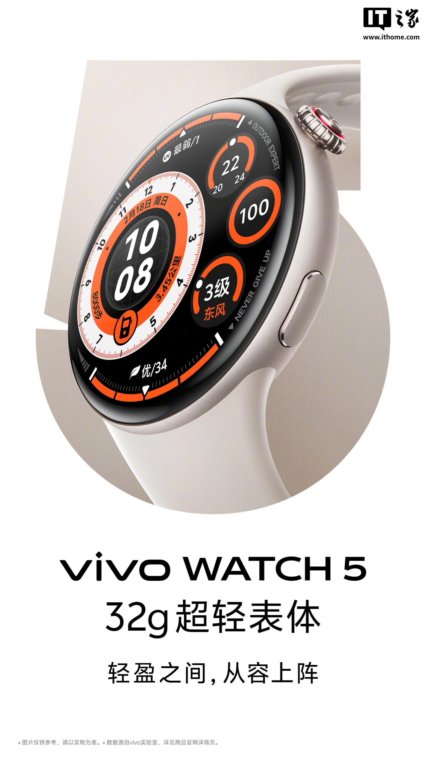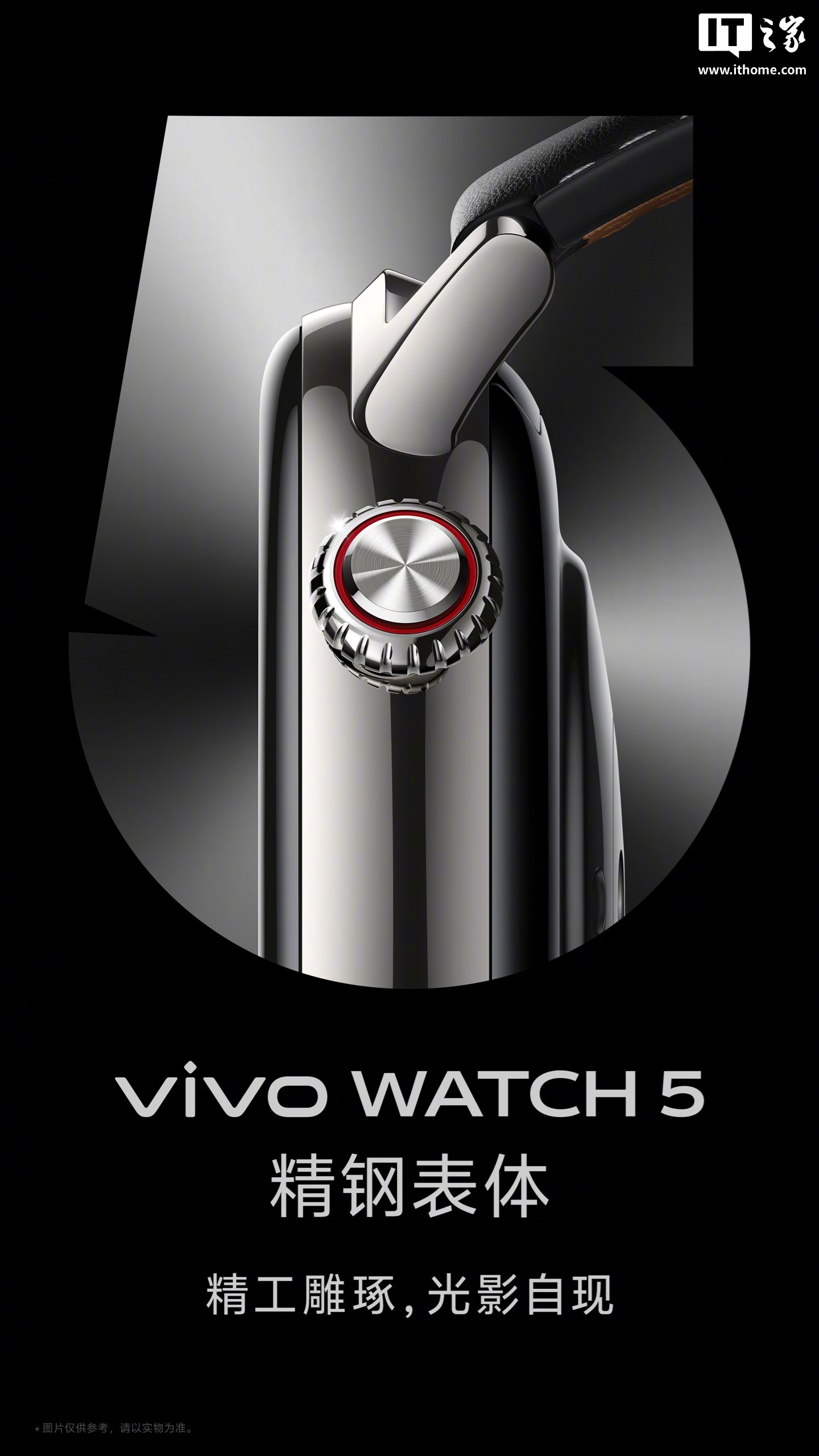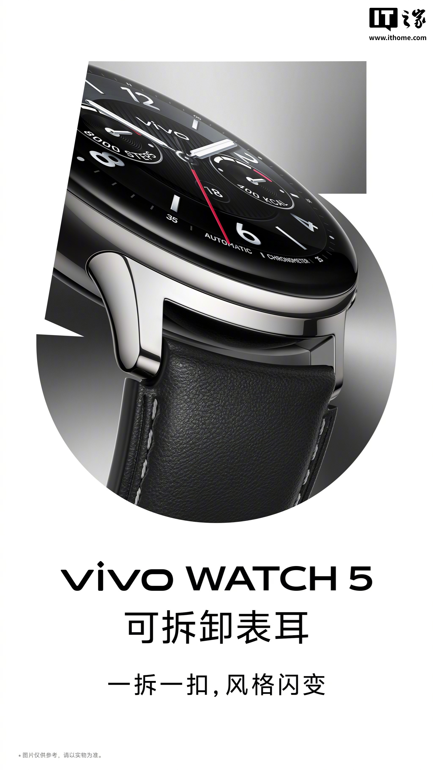 根据 vivo 官方最新预热,vivo WATCH 5 智能手表将提供全新精钢版本(亮面不锈钢中框),并配有可拆卸表耳 + 真皮表带。手表还升级更窄的黑边,同时表体尺寸进一步缩小,重量约 32g。
