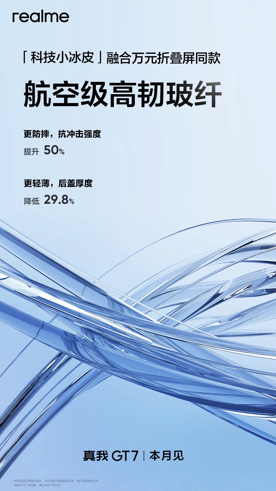 另外,真我 GT7 手机行业首次机身应用冰感石墨烯材料,宣称“导热系数为普通玻璃机身的 6 倍”;融合万元折叠屏同款航空级高韧玻纤,号称质感握感兼备。