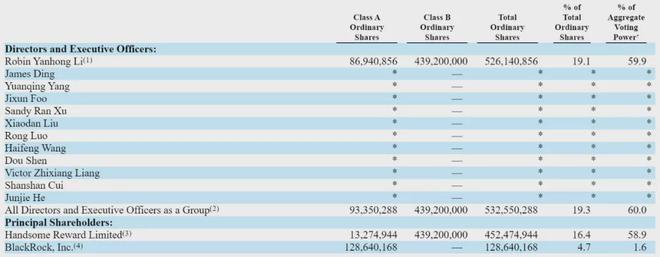 IT之家注意到,截至 2025 年 1 月 31 日,百度创始人、CEO 李彦宏一共持股 19.1%,有 59.9% 的投票权。BlackRock 持股为 4.7%,有 1.6% 的投票权。