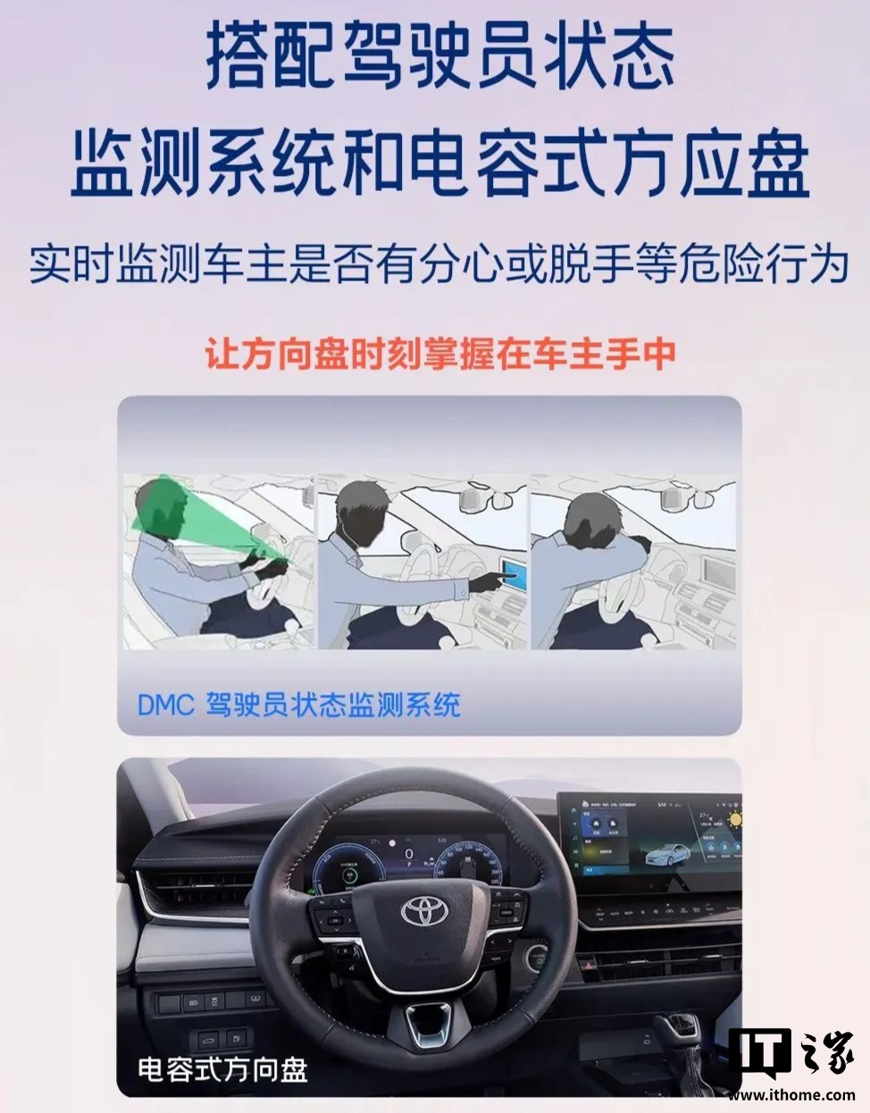 据介绍,本次上市的凯美瑞双擎 2.5HG 尊贵智驾版基于双擎 2.5HG 尊贵版进行升级、双擎 2.5HXS 运动 Plus 智驾版则基于双擎 2.5HXS 运动 Plus 版进行升级。另外,新车搭载驾驶员状态监测系统和电容式方向盘,可实时监测车主是否有分心或脱手等危险行为。