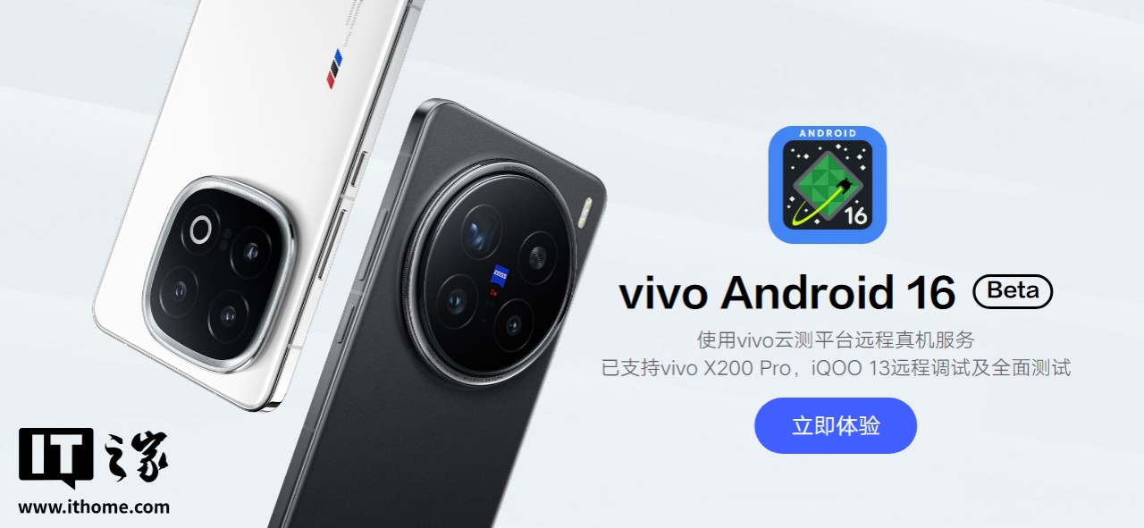 IT之家 4 月 9 日消息,Android 16 的首个 Beta 版本已经正式上线,vivo 今日宣布在 X200 Pro、iQOO 13 机型上都完成了 Android 16 Beta 版的开发者适配版本,来帮助更多开发者抢先体验新安卓版本特性。