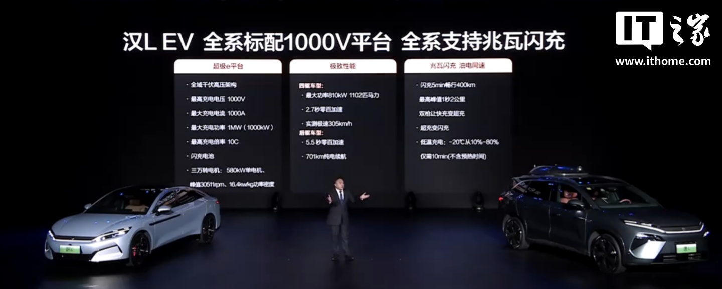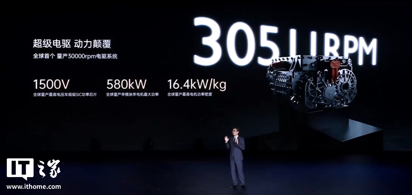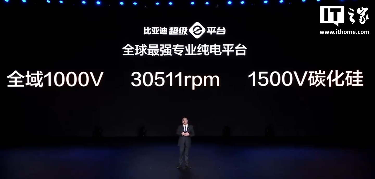 该车基于“超级 e 平台”研发,包含全球首个整车超级千伏架构、全球首个闪充电池、全球首个兆瓦闪充系统、全球首个量产 30000rpm 电驱系统。