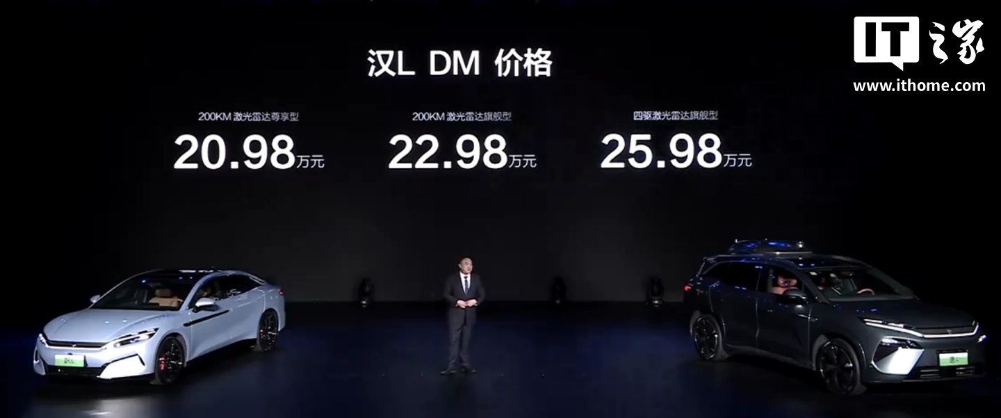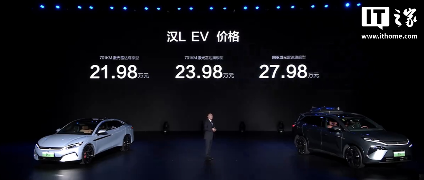 IT之家 4 月 9 日消息,比亚迪全新中大型轿车汉 L 今晚正式上市。汉 L EV 售价 21.98 万元起,汉 L DM 售价 20.98 万元起。
