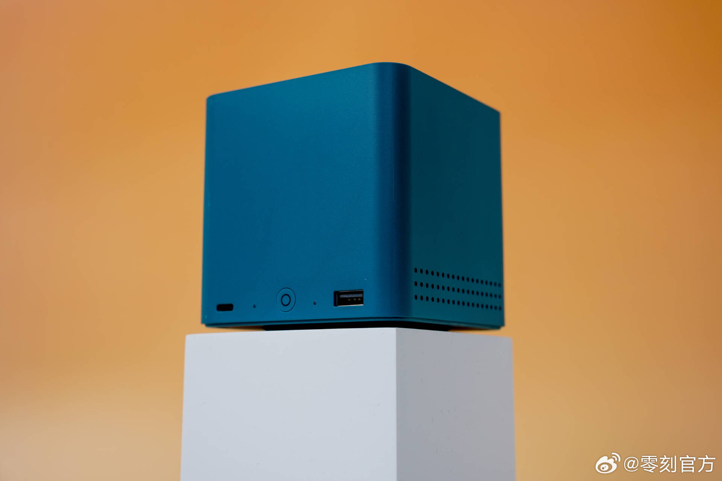 这款小主机采用了内置电源设计,尺寸为 99×99×98.3mm,重约 730 克,提供珍珠白、孔雀蓝、暗夜灰三种配色。