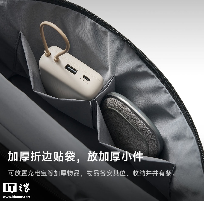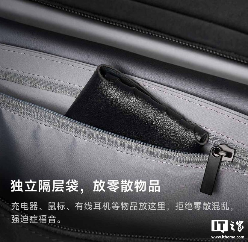 包内还设有独立隔层袋,可以放置充电器、鼠标、有线耳机等零散物品。