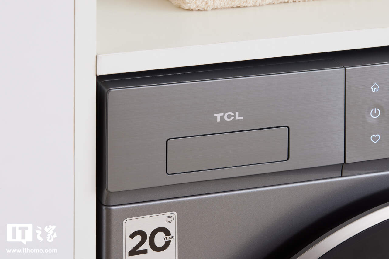 左侧 TCL 的 logo 区域内,隐藏着洗衣液、柔顺剂的投放区,支持智能投放。