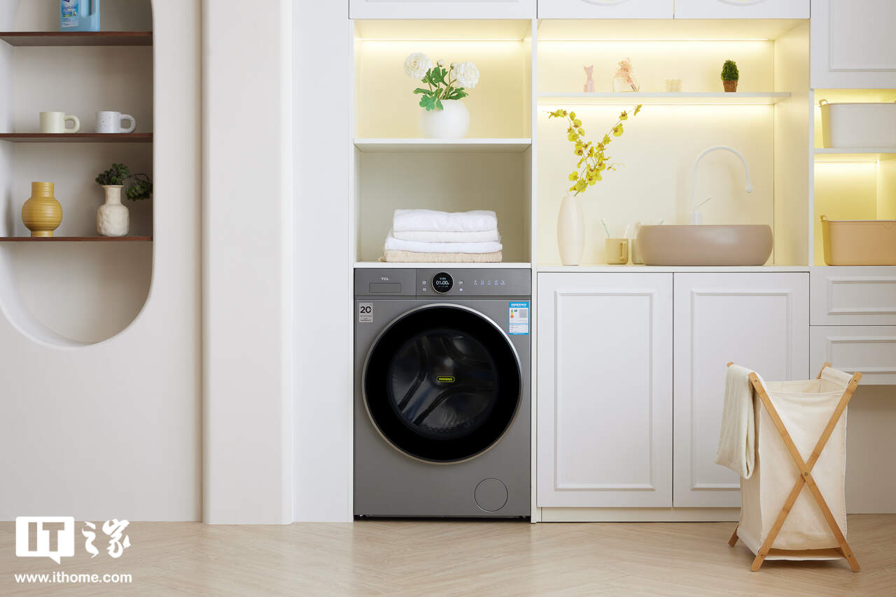 在“烘干”方面,TCL AI 超级筒洗烘一体机 T7R Pro 也加入了“AI 智能柔烘”,提供 50-55℃的温和烘干环境,还有四种干度模式可选,还支持微蒸空气洗功能,快速去除衣物上的异味、灰尘和毛屑。