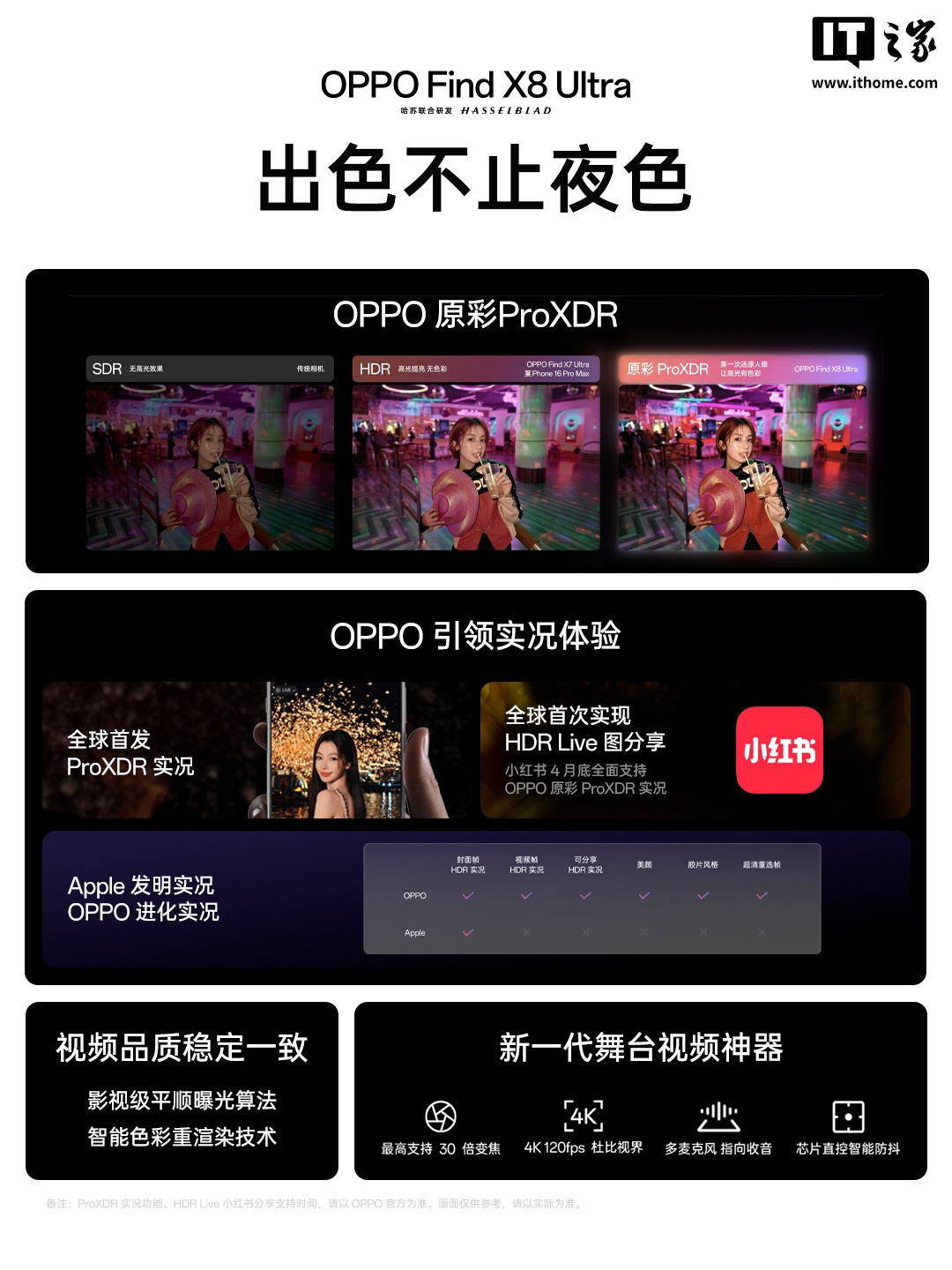 据介绍,新机实现了 16-bit 色彩与光子信息的完整呈现,宣称画面高光部分不再泛白,可还原人眼所见。依托该技术,实况照片也迎来全面升级,首次实现从预览到成片的全链路 HDR 动态显示体验。OPPO 还宣布与小红书达成平台级战略合作,后者将全面支持原彩 ProXDR 的照片、Live、视频的显示与分享,该功能预计 4 月底上线。