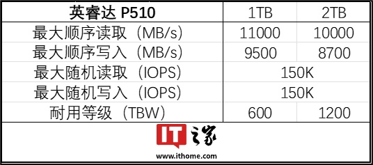 IT之家在此附上英睿达 P510 固态硬盘两个容量版本的参数: