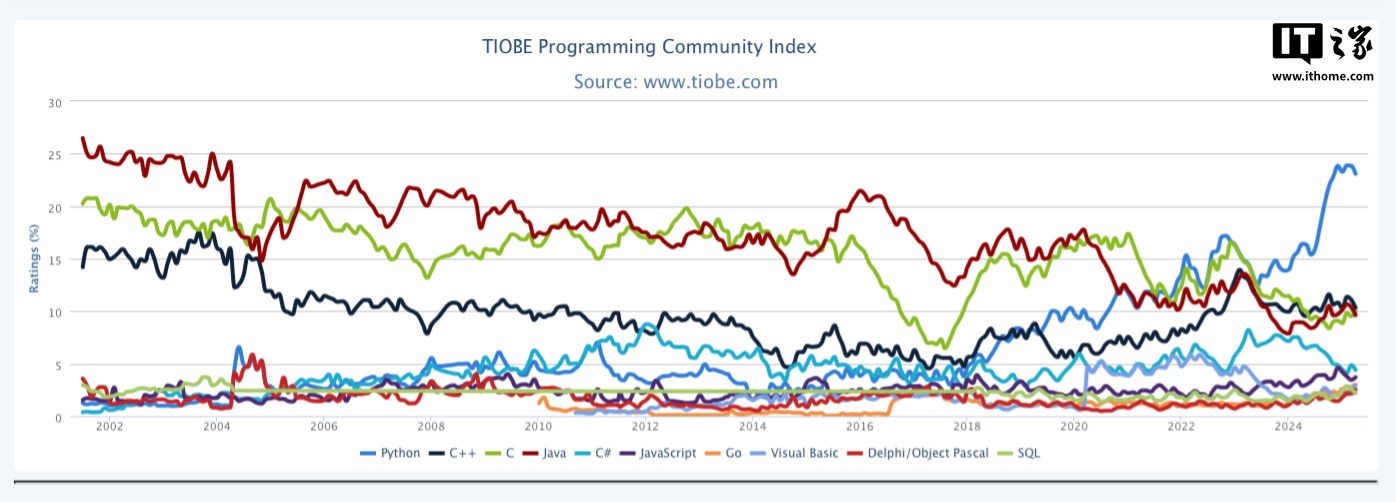 IT之家 4 月 11 日消息,TIOBE 编程社区指数是一个衡量编程语言受欢迎程度的指标,评判的依据来自世界范围内的工程师、课程、供应商及搜索引擎,今天 TIOBE 官网公布了 2025 年 4 月的编程语言排行榜,IT之家整理如下: