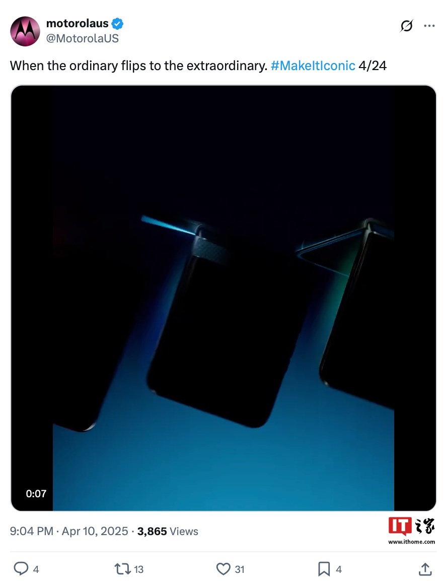 IT之家 4 月 11 日消息,联想宣布旗下摩托罗拉 moto razr 60 / Ultra 小折叠手机(海外名为摩托罗拉 razr 2025 / razr Plus 2025)将于 4 月 24 日发布。