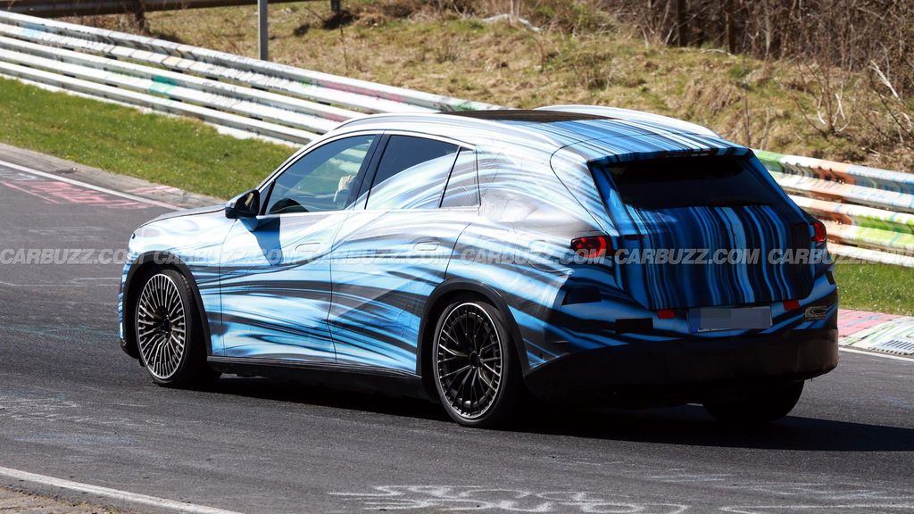 伪装下的车门与尾部面板加入额外遮盖,试图掩饰真实造型。尽管如此,新车轮廓已显露端倪,车身比现款 GLC 更长,尤其是后门后的平直金属面板,显得格外宽大。