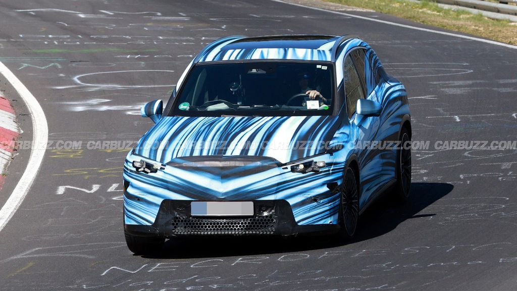 外观方面,本次曝光的路测图以蓝色与白色涂装亮相,相比早期原型车,新车前脸设计大幅调整。此前版本的车头格栅从引擎盖凸出,显得突兀,而最新原型车虽仍覆盖伪装,但车鼻造型明显更流畅。