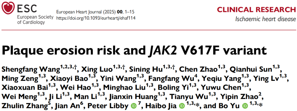 IT之家 4 月 11 日消息,哈尔滨医科大学附属第二医院(简称“哈医大二院”)心血管病医院院长、心内科主任于波教授和贾海波教授团队,今年 3 月在心血管领域顶级期刊 European Heart Journal 《欧洲心脏杂志》在线发表了题为“Plaque erosion risk and JAK2 V617F variant”的研究论文。