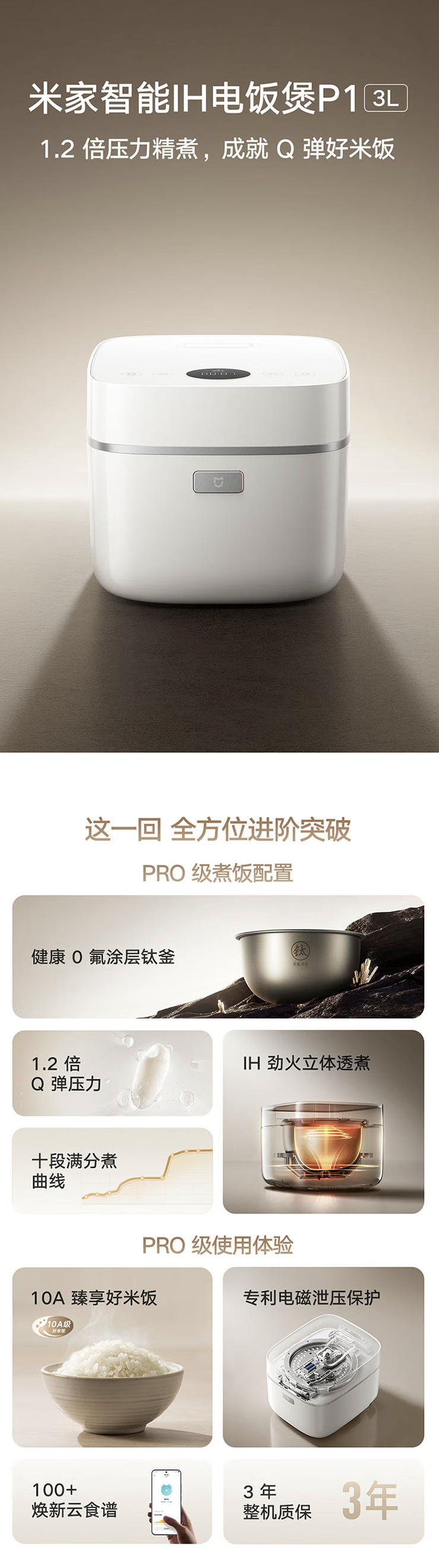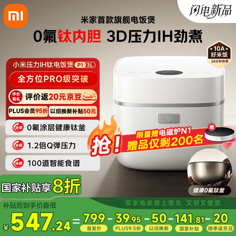 IT之家 4 月 12 日消息,小米现已在京东上架米家 3D 压力 IH 钛内胆电饭煲 P1 3L,这款电饭煲主打“0 氟涂层钛釜”、“1.2 倍压力”、“100 道智能食谱”,目前处于预售阶段,定价为 799 元,京东 PLUS 优惠叠加国补后,到手至低为 547.24 元,将于 4 月 17 日晚 8 点首销。