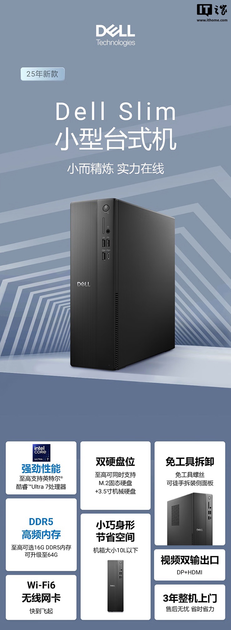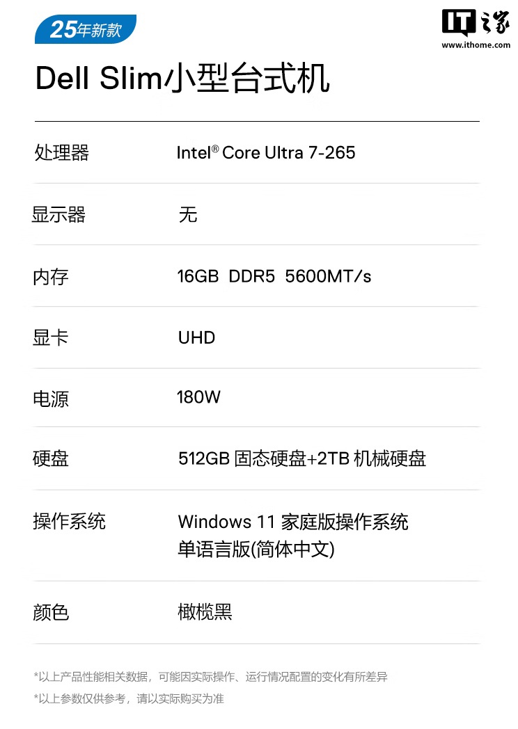 IT之家 4 月 12 日消息,戴尔现已在京东上架 2025 款 Dell Slim 台式机,该机采用“Ultra 7-265 + 16GB RAM + 512GB SSD + 2TB HDD”,定价为 7699 元,国补后定价为 5439.2 元。
