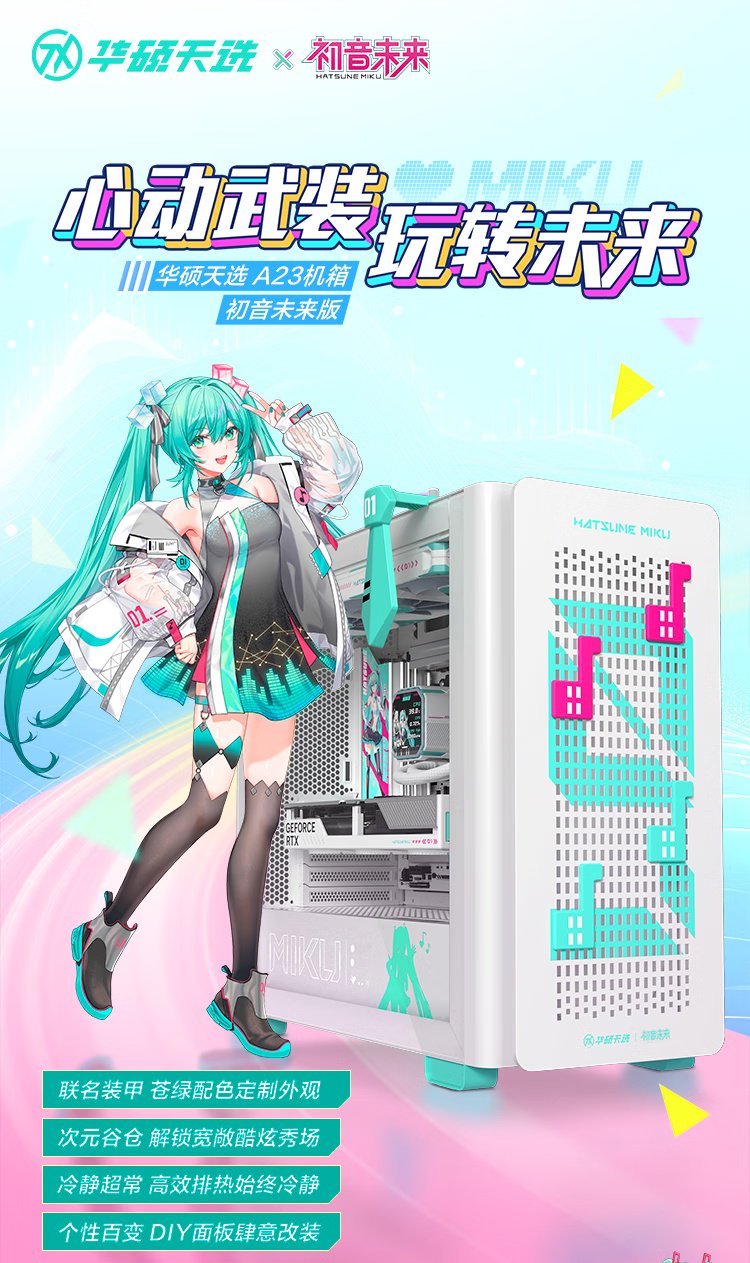 其中,华硕 A23 光影机箱初音未来联名版定价 549 元,天选 B850 主板初音未来版定价 1149 元,均将于 5 月 8 日开售。