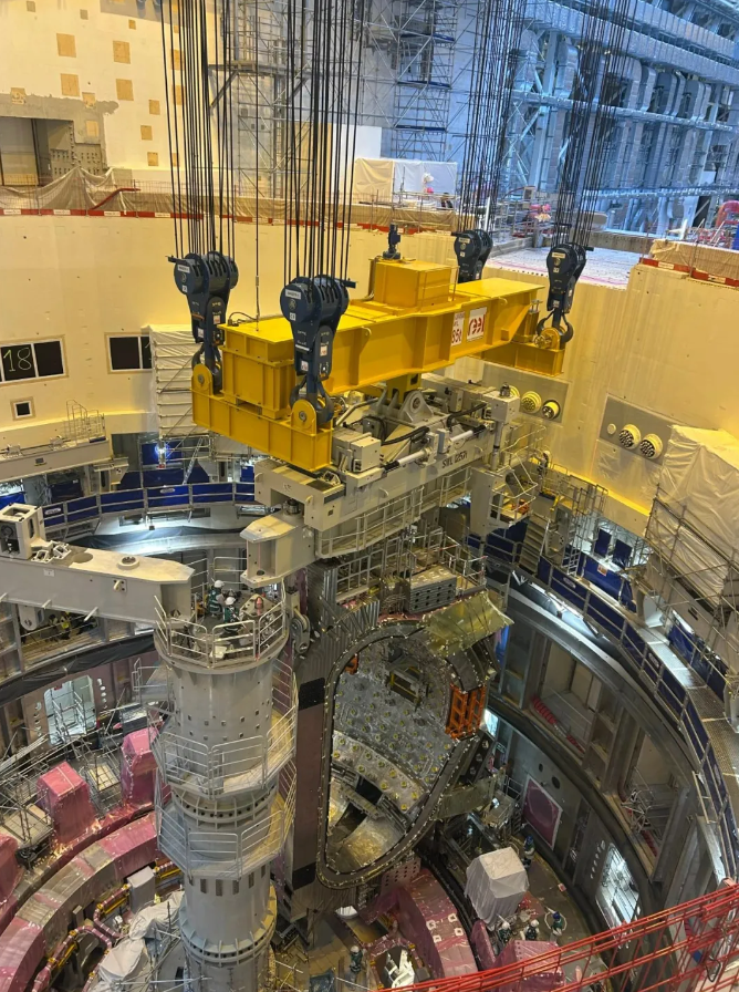 IT之家 4 月 13 日消息,据中核集团消息,4 月 10 日,位于法国南部卡拉达舍的国际热核聚变实验堆(ITER)真空室模块组装合同标段(SMSA)首个真空室模块(7 号模块)顺利完成吊装并精准就位,成为 SMSA(Sector Modules Sub-Assembly)中首个进入托卡马克堆坑的核心扇段模块。