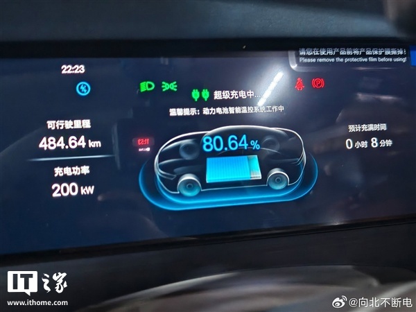 IT之家注意到,博主选择了 240kW 的星星充电桩进行双枪充电测试。其公布的充电测试视频显示,比亚迪汉 L 从 1% 充至 100%,仅用时 19 分 25 秒。这意味着在不到 20 分钟内,该车型的 83.2kWh 电池包就能在普通第三方快充桩上充至满电。