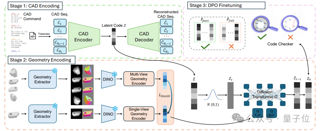 考虑到从单张图像重建 CAD 模型的挑战性,团队首先构建了一个多视图输入的 DiT 生成模型,以更稳定地学习图像到 CAD 空间的映射关系。