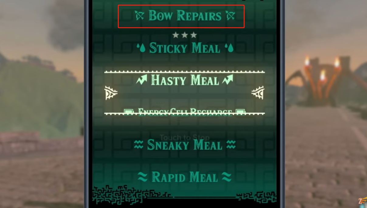 在 4 月 2 日发布的《塞尔达传说:旷野之息》和《塞尔达传说:王国之泪》Switch 2 版本的概述预告片中,任天堂短暂展示了装备修复功能。视频中展示了 Zelda Notes 的每日奖励功能,该功能将为玩家提供诸如免费餐食或生命值、耐力或能量电池电量的完全补充等福利,同时还有“弓箭修复”。