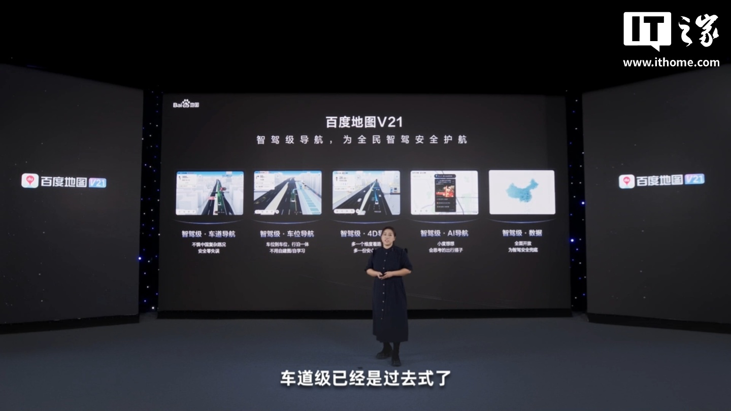 百度地图表示,V21 版本主打“智驾级车道导航”“智驾级车位导航”“智驾级 4D 导航”“智驾级 AI 导航”“智驾级数据”。