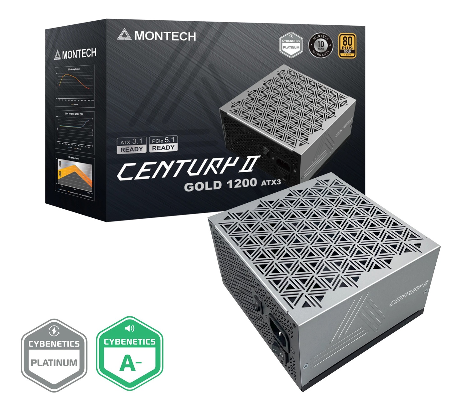 MONTECH 君主科技在 CENTURY II 系列电源上提供了 OPP、OVP、UVP、SCP、OCP 及 OTP 六大保护机制,并给予 10 年保固。