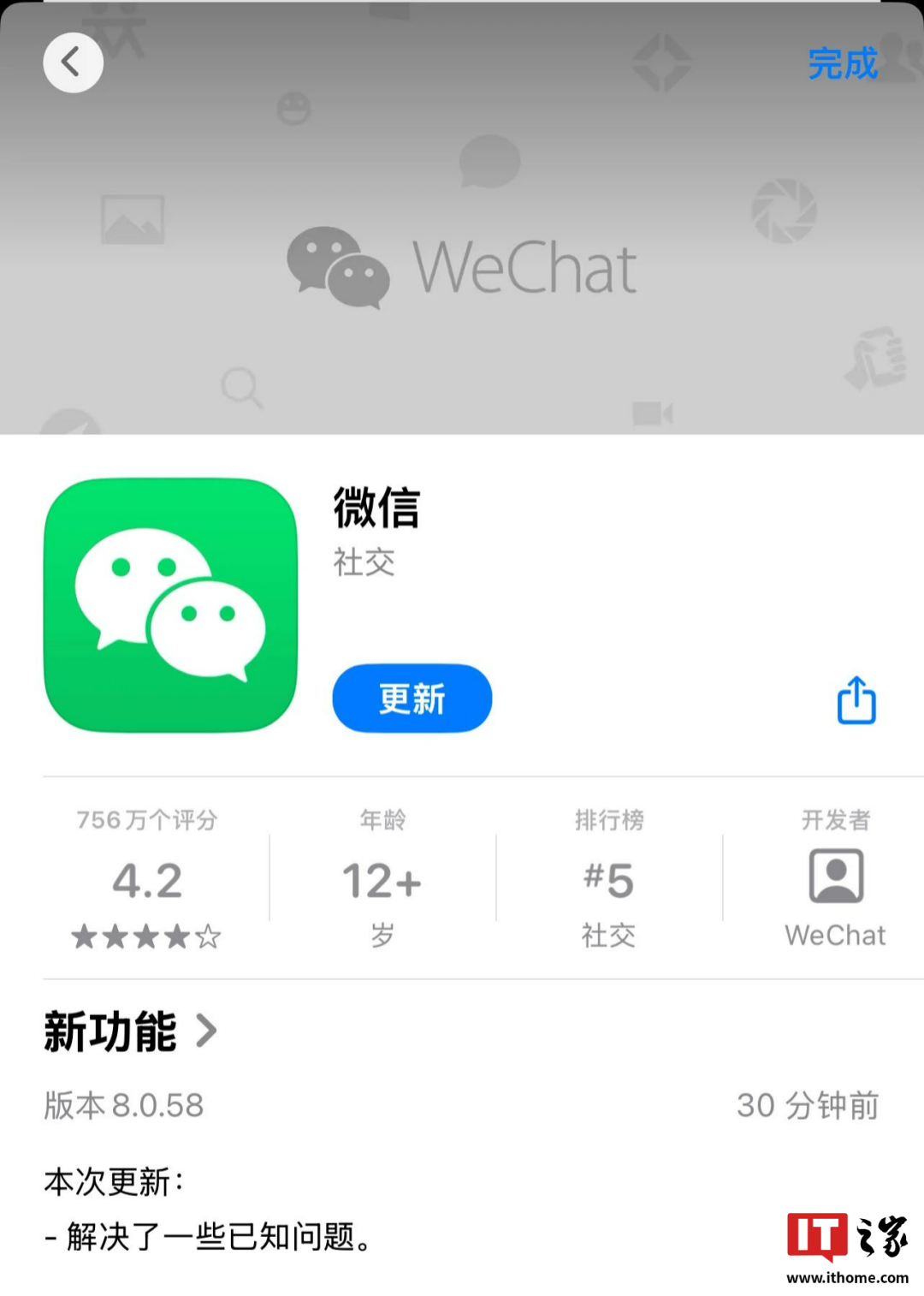 然后在下午,微信又突袭带来了 iOS 平台 8.0.58 正式版更新,距离内测版放出,仅仅过了 3 天。