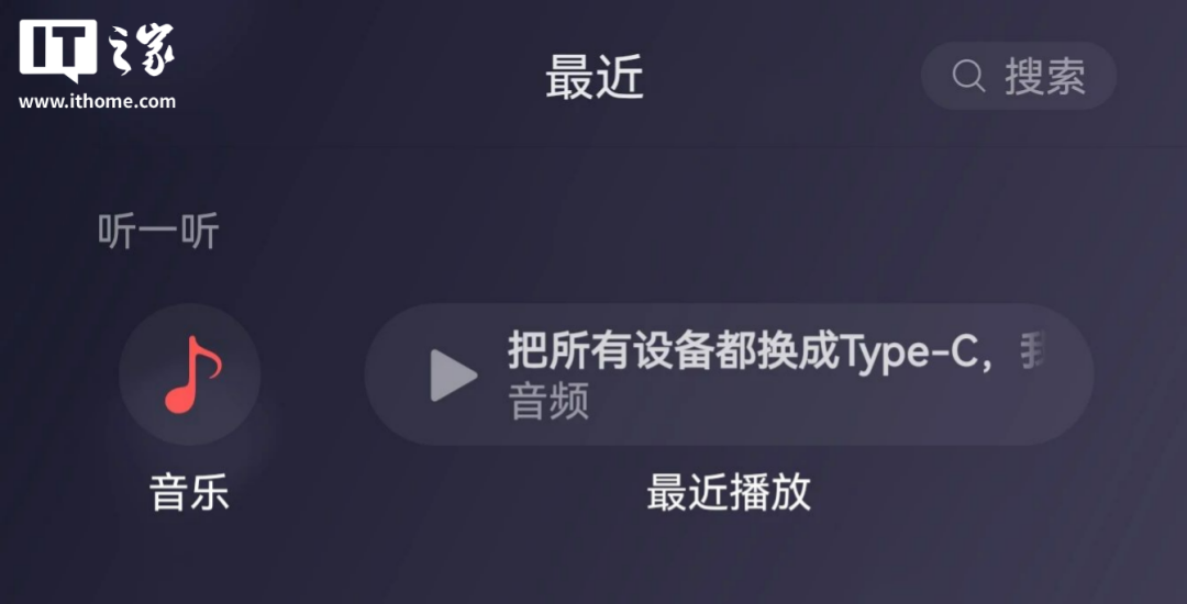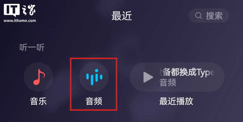 而在更新到此次内测版后,音频选项消失不变,最近播放的图标拉长。