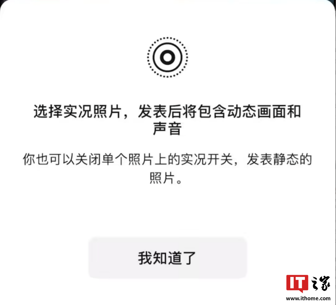 而在更新到 8.0.58 内测版后,IT之家小编第一时间就查看了朋友圈是否能发实况图片,结果发现并不行。