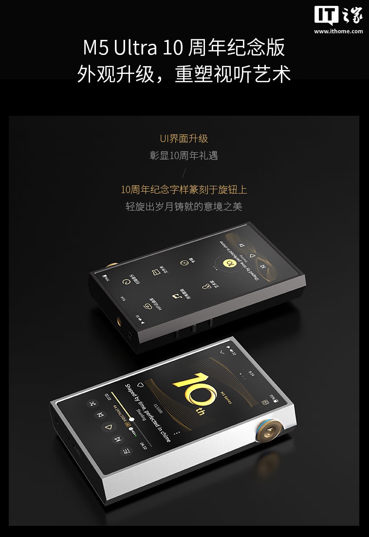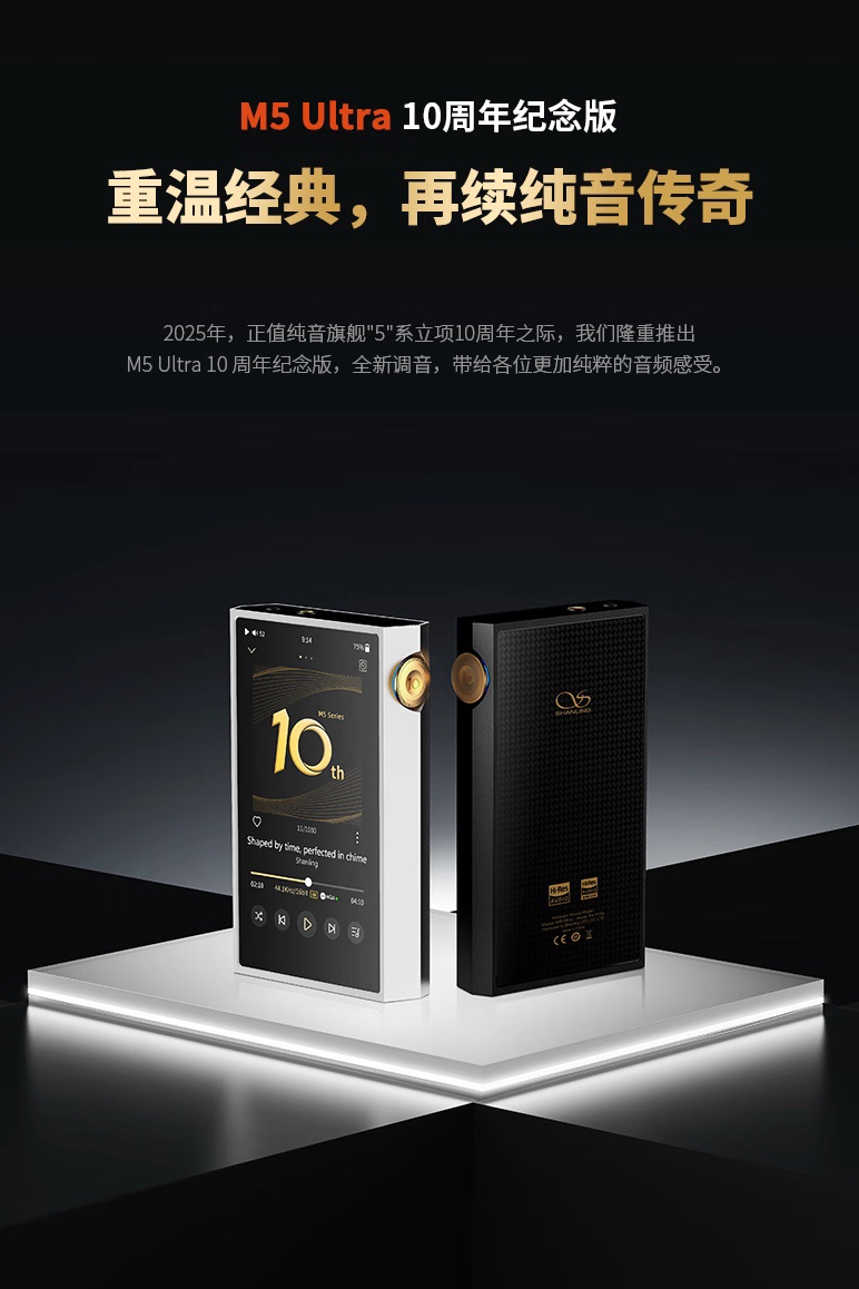 IT之家 4 月 15 日消息,“山灵音响”旗下 M5 Ultra 十周年纪念版播放器现已在京东开售,这款播放器可选金曜黑 / 金曜银双色,标准价为 3698 元,首发价为 3498 元。