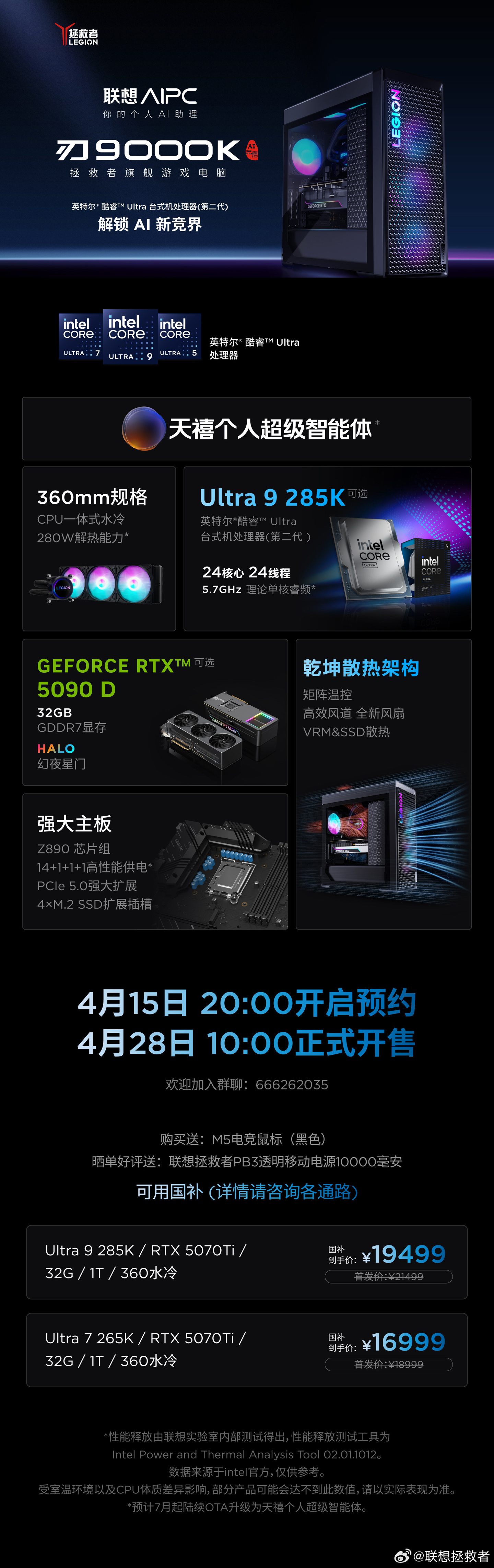 IT之家 4 月 15 日消息,在今晚的发布会上,联想还推出了拯救者刃 7000K 2025 超能版以及刃 9000K 2025 两款整机: