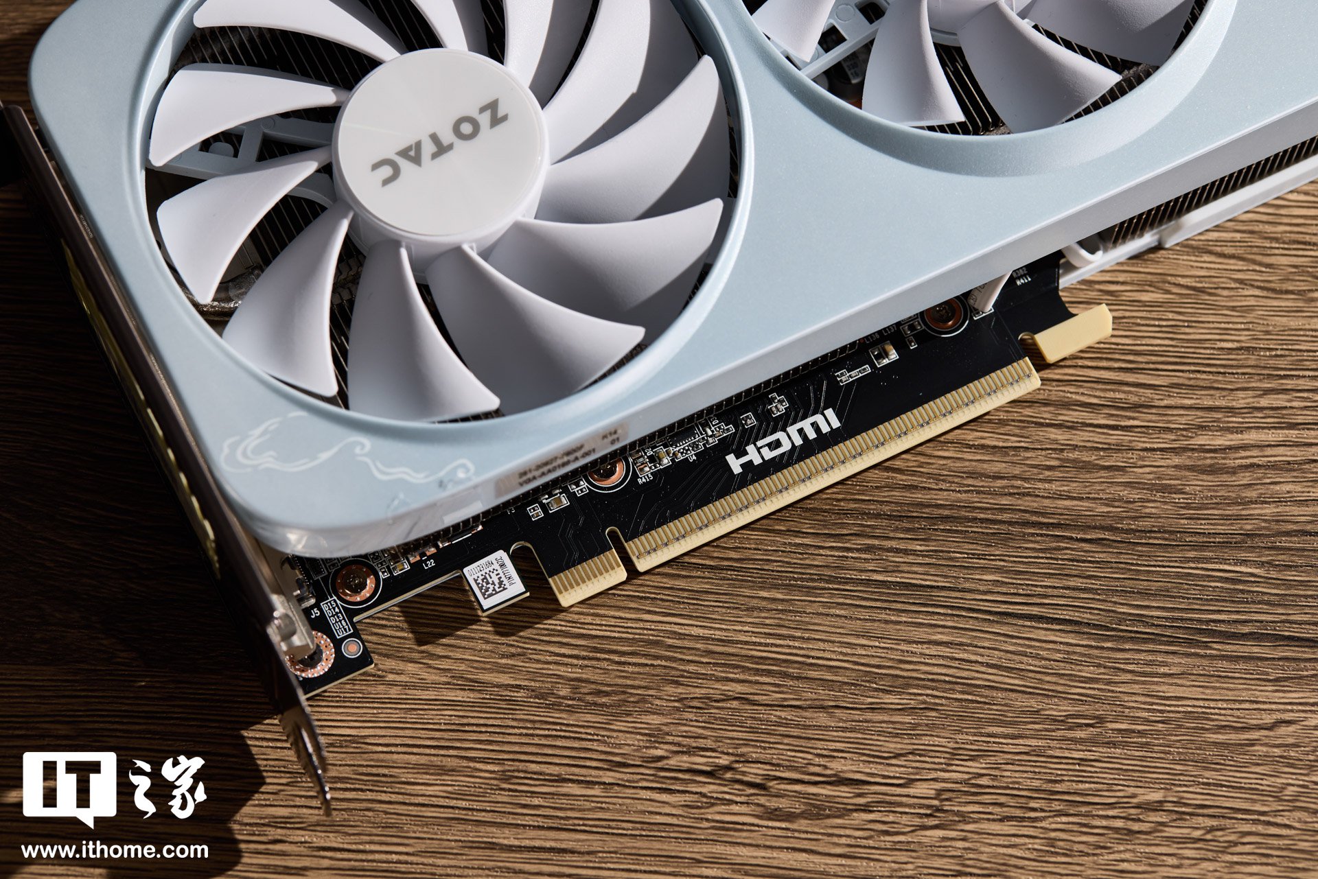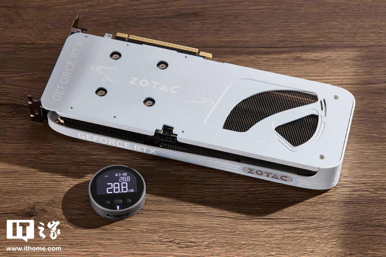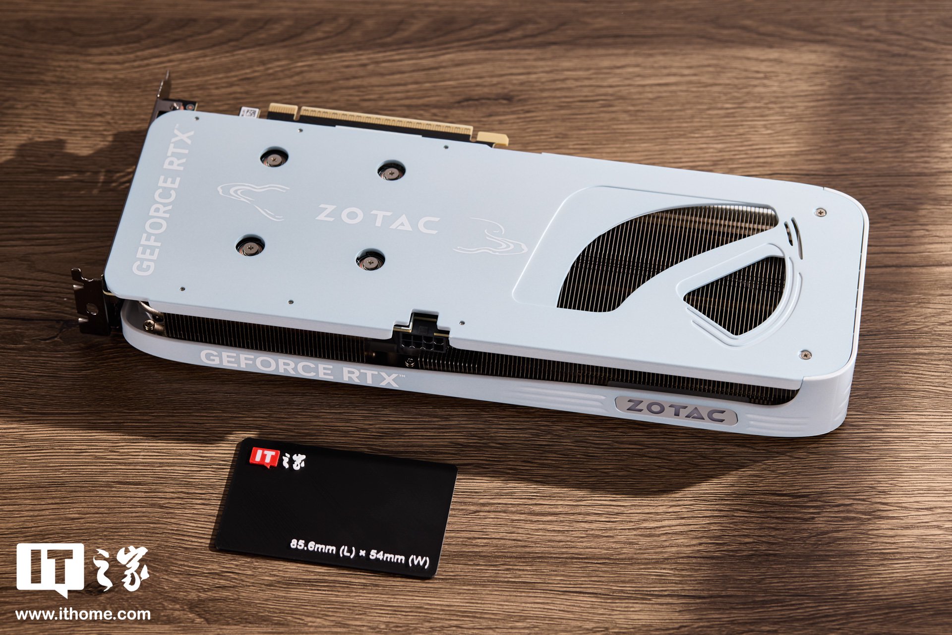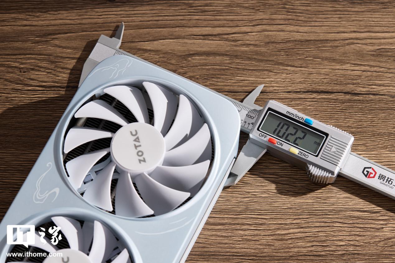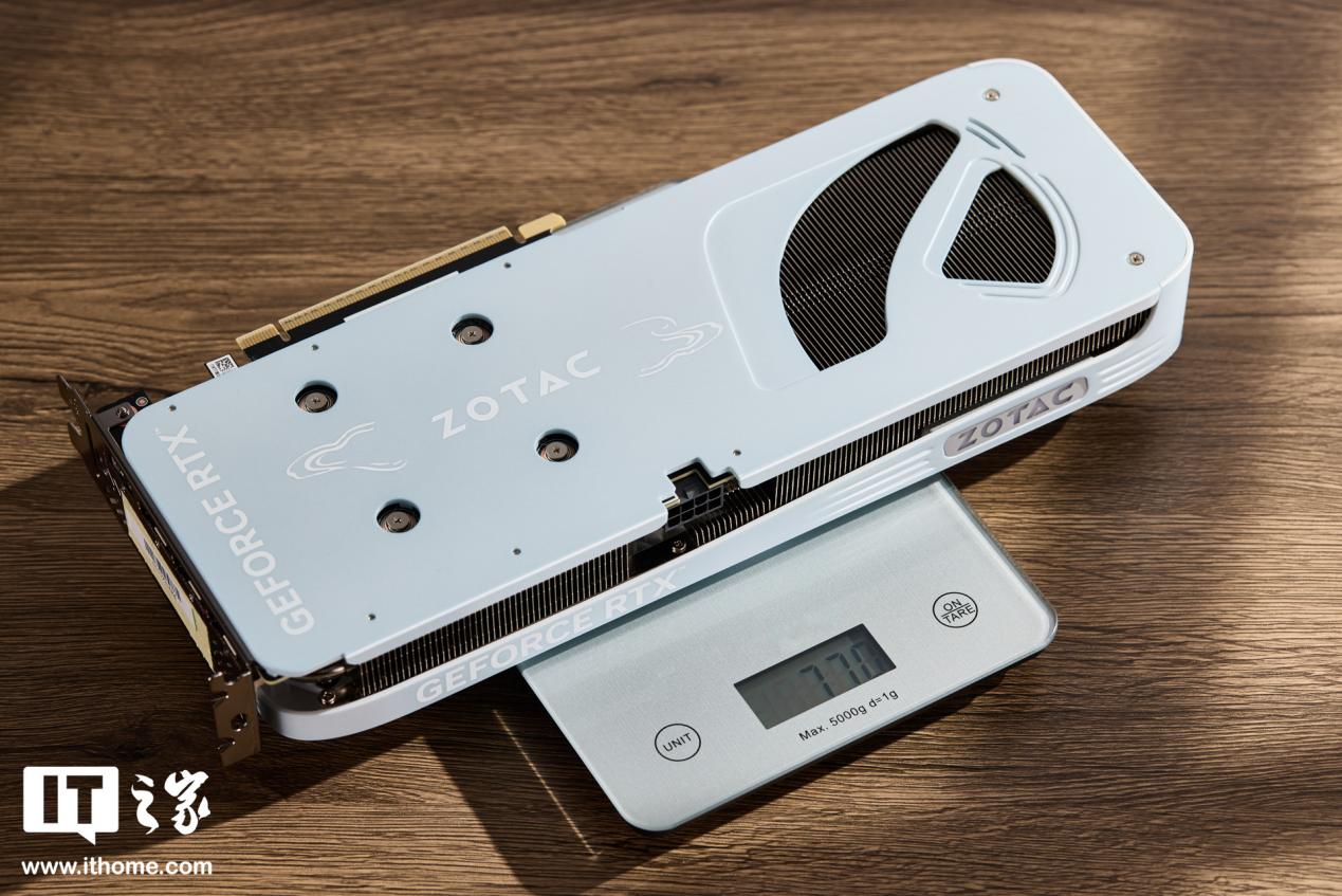 索泰 GeForce RTX 5060 Ti 8GB 月白 OC 尺寸为 288mm×102.2mm×37.0mm,重量为 770g,体积更为精巧。