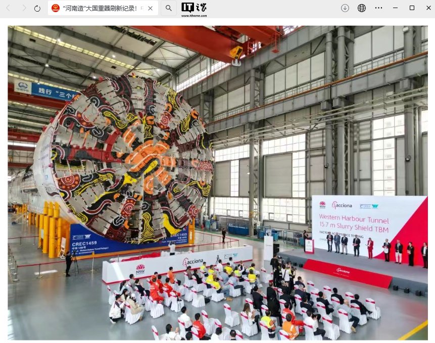 IT之家 4 月 16 日消息,据河南发布消息,我国自主研制的超大直径盾构机“中铁 1459 号”今日在位于郑州经开区的中铁装备国家 TBM 产业化中心顺利下线。