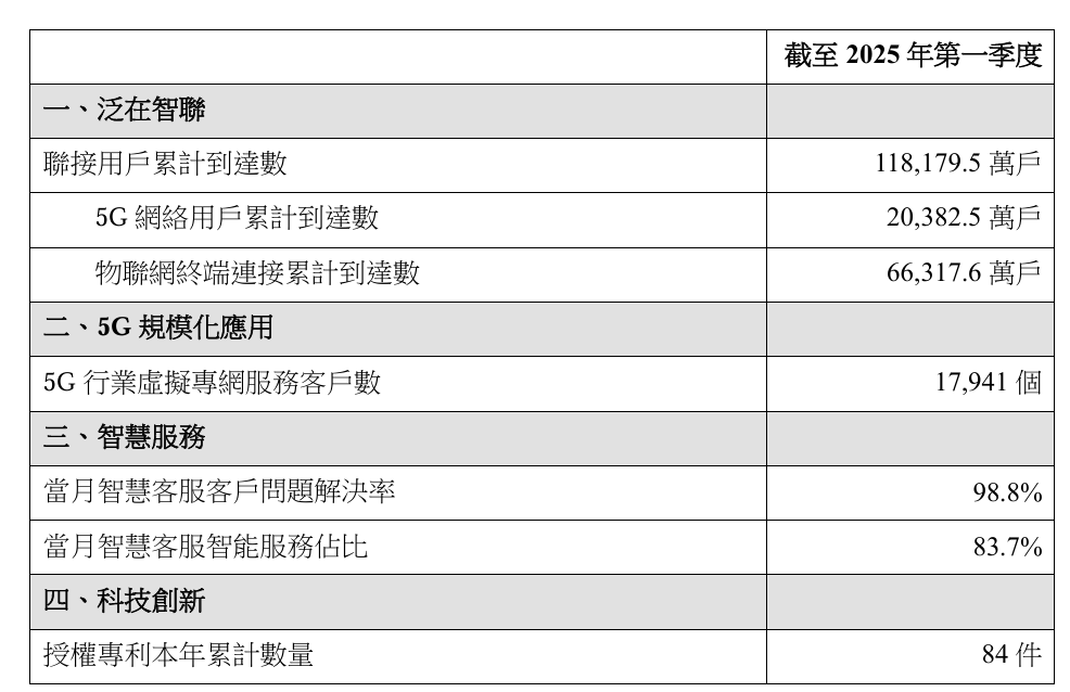 2025 年第一季度,中国联通算力业务规模突破,联通云收入人民币 197.2 亿元。以数据中心适智化改造推动 AIDC 提速发展,数据中心收入人民币 72.2 亿元,同比提升 8.8%。深入推进 5G 规模化应用,累计落地 3 万个「5G + 工业互联网」项目和 7,500 多个 5G 工厂。