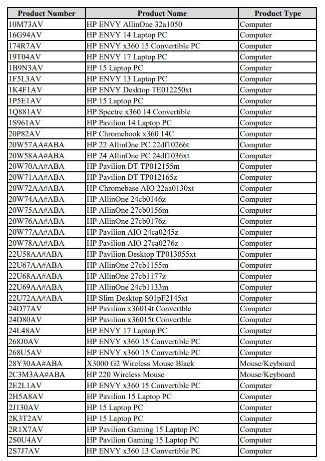 根据和解协议,消费者若是在 2021 年 6 月 5 日至 2024 年 10 月 28 日期间购买过特定商品即可申请赔偿,包括部分惠普 Spectre、Chromebook Envy 和 Pavilion 笔记本电脑、惠普 Envy 和 Omen 台式机,以及部分机械键盘和无线鼠标。