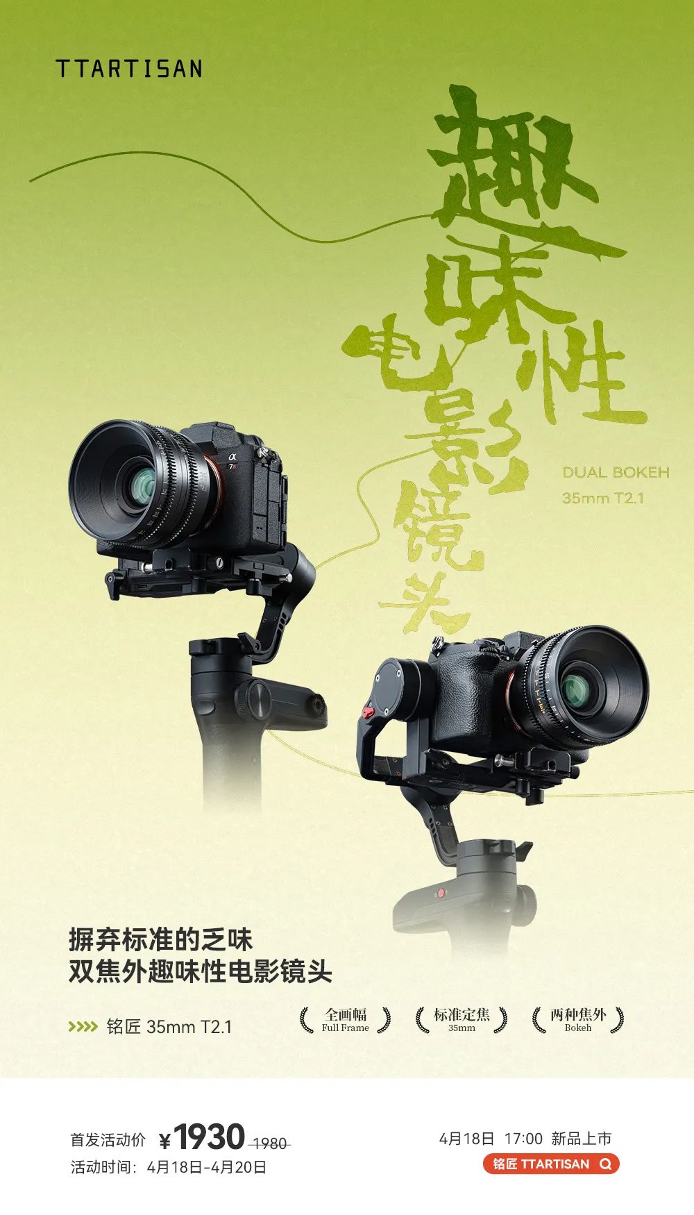 IT之家 4 月 19 日消息,铭匠光学昨天推出了一款 35mm T2.1 趣味性电影镜头新品,首发价 1930 元,提供 E、X、Z、RF、L 卡口版本。