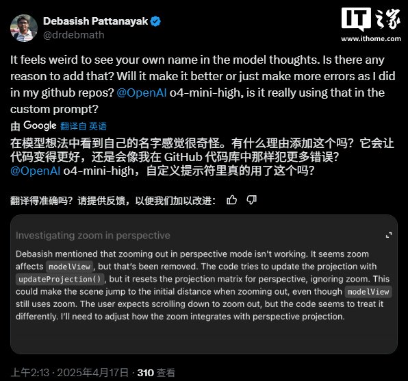 不过,截至周五这一变化似乎已被撤销,o3 模型又恢复为默认的“用户”称呼。