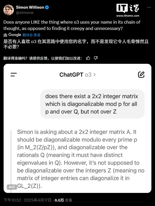 IT之家 4 月 20 日消息,近期,部分 ChatGPT 用户注意到一个现象:这款人工智能聊天机器人在与用户互动和进行逻辑推理时,会直接称呼用户的名字。这一行为并非该工具此前的默认设置,更令人费解的是,一些用户称,即便从未向 ChatGPT 透露过自己的姓名,也被其直呼其名。