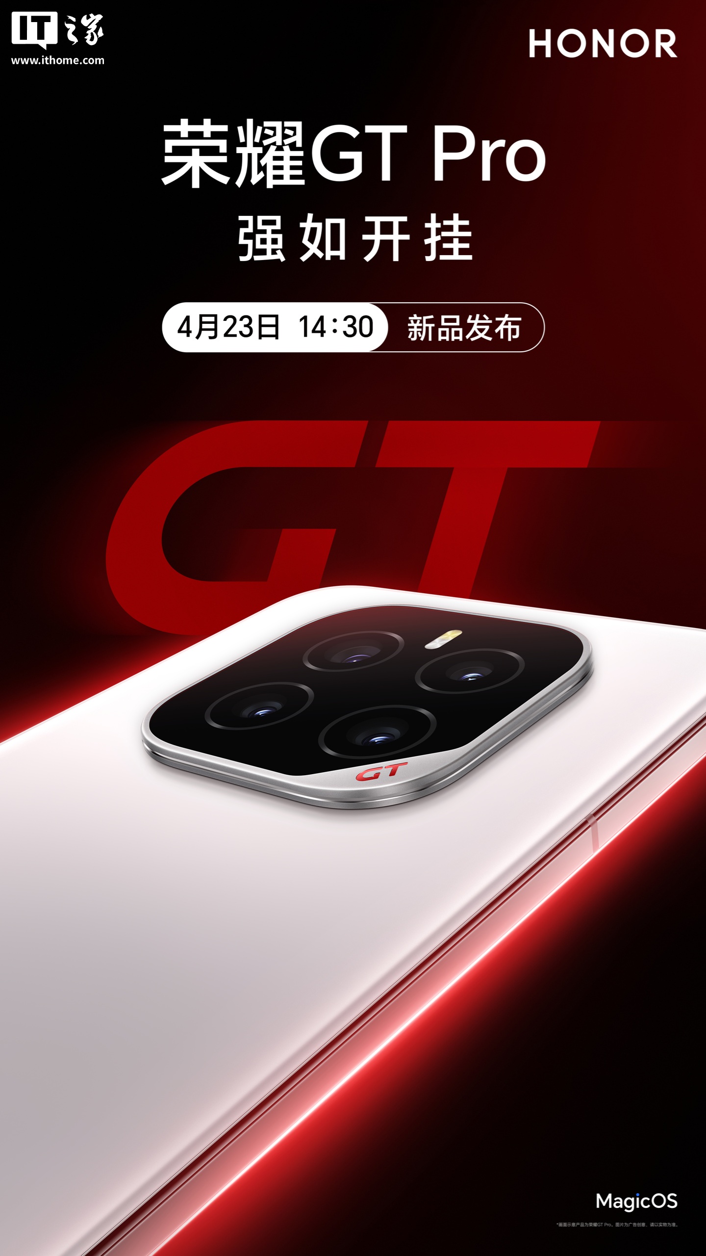 IT之家 4 月 20 日消息,定位“电竞性能旗舰”的荣耀 GT Pro 手机已官宣将于 4 月 23 日 14:30 发布。