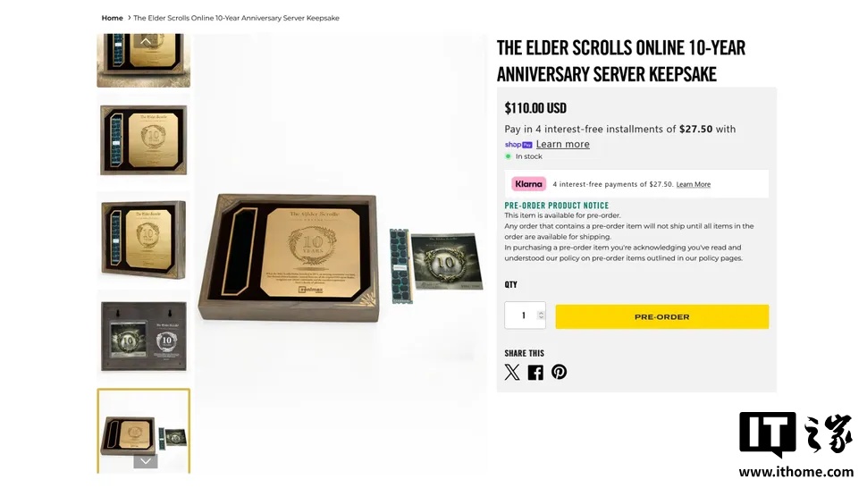 该纪念品的售价为 110 美元(IT之家注:现汇率约合 803 元人民币),对于《上古卷轴 OL》的铁杆粉丝来说,无疑具有一定的吸引力。