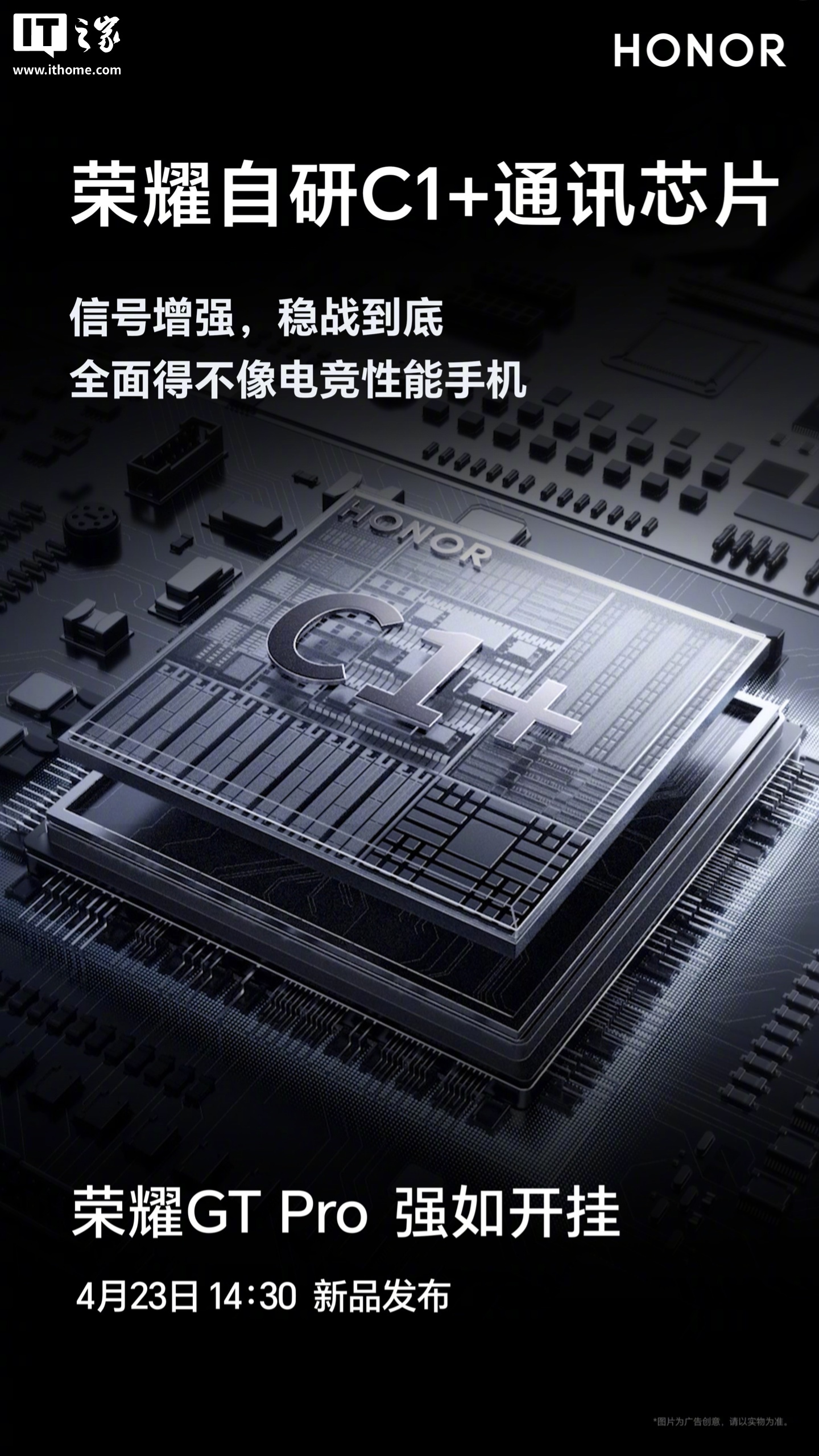 荣耀官方今日持续预热新机,除 3D 超声波指纹、荣耀环绕低音炮等配置外,荣耀 GT Pro 还将搭载 HONOR C1+ 自研射频增强芯片,支持硬件级信号增强;全新升级荣耀优速通,宣称“弱网游戏不掉线”。