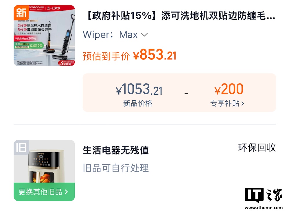 添可・芙万 Wiper Max 洗地机官方上市价 2390 元,去年日常 1999 元。