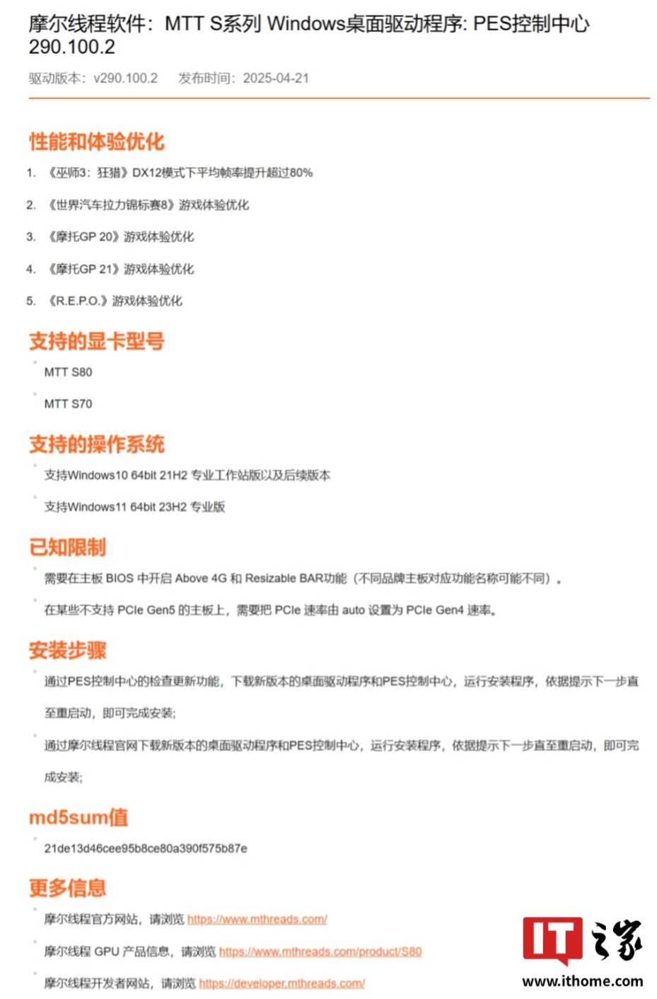 https://www.mthreads.com/pes/drivers/driver-info/DESKTOP_MTT_S80/release-note/v290.100.2?productType=DESKTOP&osVersion=Windows%2011