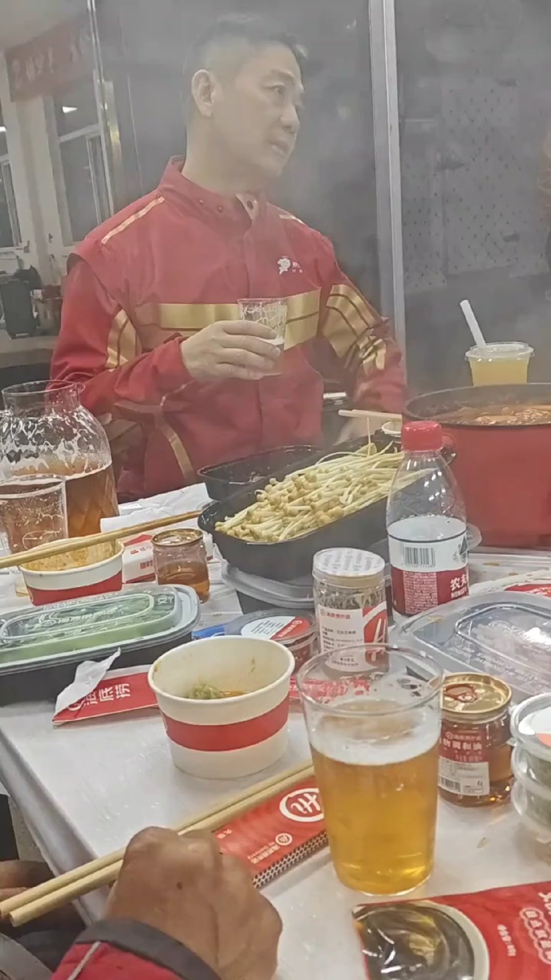 不仅如此,京东骑手称,刘强东还请大家吃了一顿火锅。发视频的骑手称:今天本来挺冷的,送完货吃东哥请的火锅,瞬间感觉不冷了。