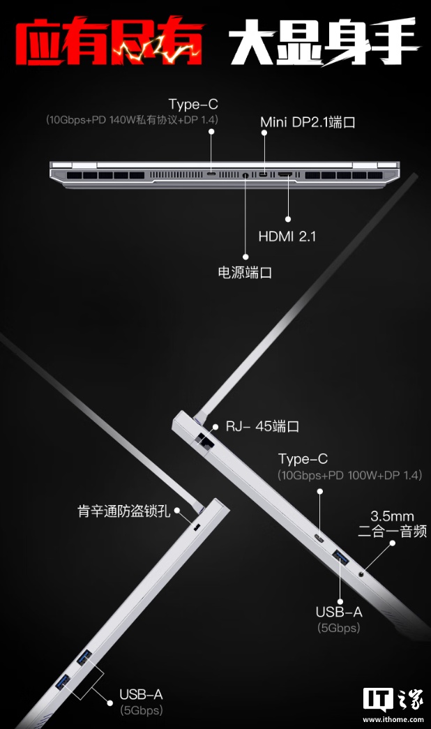 IT之家附机械革命蛟龙 16 Pro 笔记本接口信息如下: